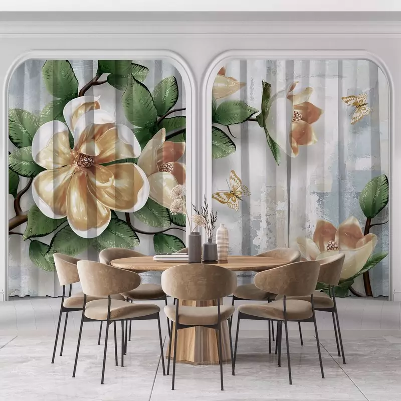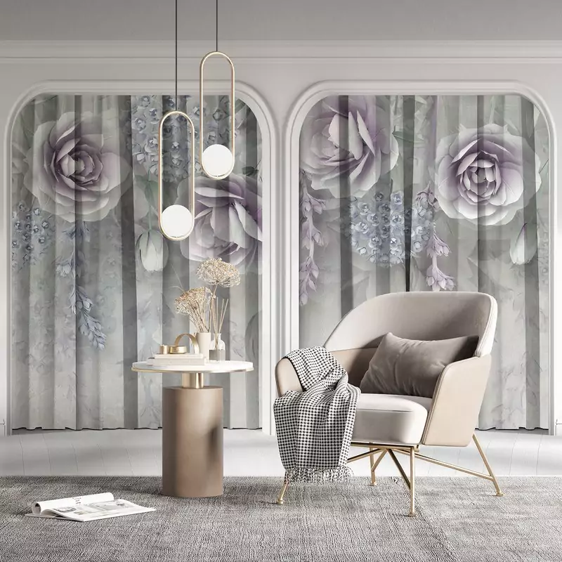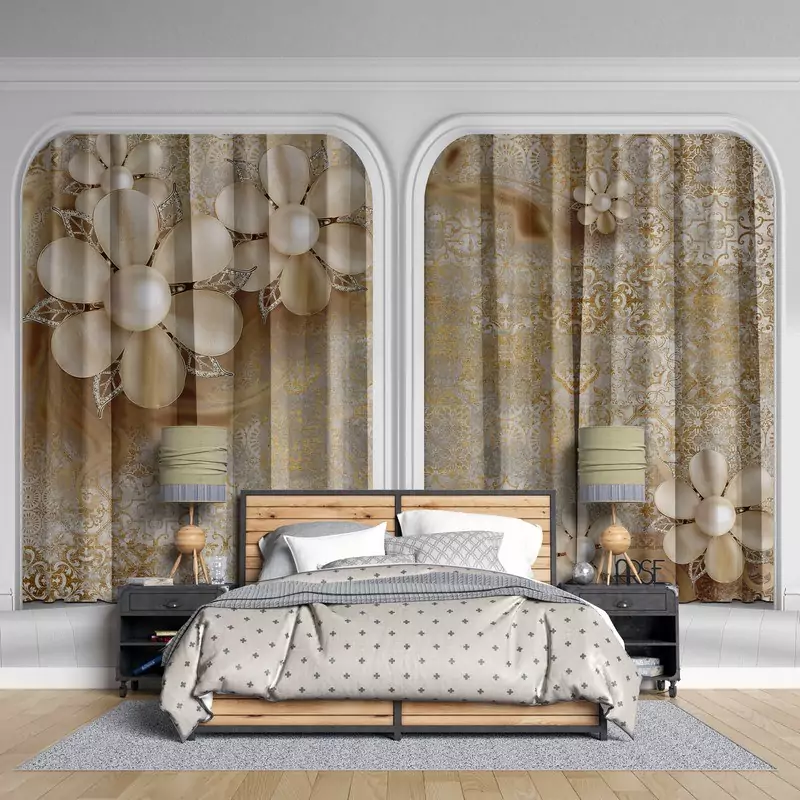 پرده پانچی کلاسیک طرح گل