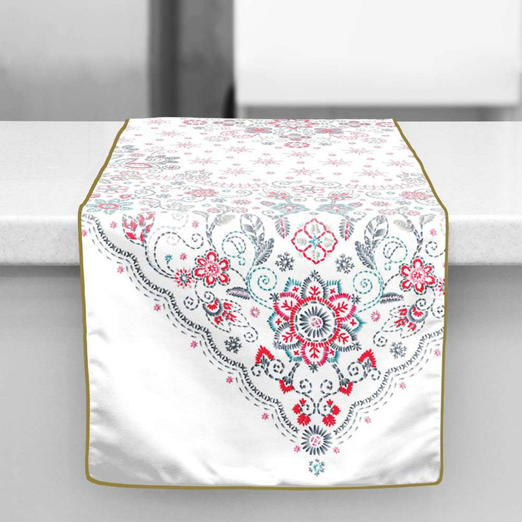 رانِر مدوپد چیدمان منزل شما را کاملا متفاوت میکند. رانر مدوپد، علاوه بر زیبایی محیط منزل برای سِت و یکدست کردن دکوراسیون شما و ایجاد هماهنگی بین اجزای خانه استفاده میشود. این رانر را طراحان مدوپد با نقشی (مدرن، زیبا و رنگبندی شاد) طراحی کرده اند. همانطور که میبینید طرحهای متفاوت و منحصر به فرد مدوپد به محیط شما شادابی و انرژی میبخشد. قرمز خاکستری اسلیمی اسلیمی سنتی سفید