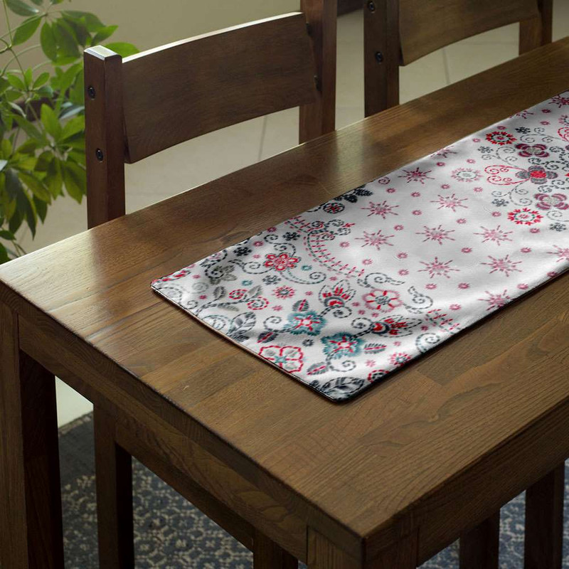 رانِر مدوپد چیدمان منزل شما را کاملا متفاوت میکند. رانر مدوپد، علاوه بر زیبایی محیط منزل برای سِت و یکدست کردن دکوراسیون شما و ایجاد هماهنگی بین اجزای خانه استفاده میشود. این رانر را طراحان مدوپد با نقشی (مدرن، زیبا و رنگبندی شاد) طراحی کرده اند. همانطور که میبینید طرحهای متفاوت و منحصر به فرد مدوپد به محیط شما شادابی و انرژی میبخشد. قرمز خاکستری اسلیمی اسلیمی سنتی سفید