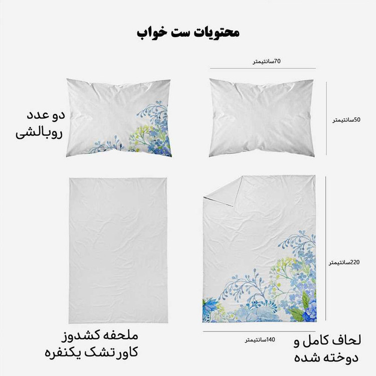 ست کاور لحاف مدوپد مناسب افرادی است که لحاف مناسب دارند و میخواهند یک سرویس اقتصادی بخرند تا از کاور لحاف برای روکش کردن آن استفاده کنند. این سرویس شامل دو روبالشی با دوخت پاکتی، یک کاور یا روکش لحاف زیپدار و یک روتشکی سفید دورکشدار است. داخل کاور لحاف نیز 4 بندینک دوخته شده که به کمک آنها میتوانید لحافتان را داخل کاور محکم کنید تا لیز نخورد. ابعاد روتشکی دورکشدار مناسب همه تشک های تک نفره است و تشک را به صورت کامل میپوشاند. ست خواب مدوپد تا وقتی که شما از آن خسته نشدهاید عمر میکند؛ با همان کیفیت روز اول. طرح و رنگ پارچه آن پس از شستوشو از بین نمیرود. استفاده از پارچههای مرغوب و بادوام، بهترین انتخاب را برای تغییر دکوراسیون اتاق خواب در اختیار شما میگذارد. محیط تولید محصولات کالای خواب مدوپد، فضایی بهداشتی و ایزوله بوده و مرتب توسط کارشناسان مورد بازرسی قرار می گیرد. همچنین ست خواب ها پس از تولید مورد بازبینی کیفی قرار گرفته و در دو مرحله بسته بندی می شوند. روتشکی مدوپد از جنس نخ صد درصد پنبه و جذب کننده کامل تعریق بدن است. محصولی که میخرید از بهترین پارچه ایرانی تهیه شده و طرح آن با استفاده از رنگهای درجه یک بر روی پارچه نقش بسته است. کاور لحاف زیپدار مدوپد از بهترین پارچههای ساتین موجود در بازار تهیه شده که ثبات و کیفیت رنگ آن را تضمین میکند. سیلیکون سُر و نرم ضد حساسیت و ضد باکتری تراکم بافت بسیار بالا با نرمی و لطافت بسیار زیاد، دوام و عمر پارچه را طولانی میکند. (باید توجه داشت که ساتین با ساتن فرق دارد. ساتین لیز نمیخورد و در مقایسه با ساتن براق نیست.) جنس این محصول ضدحساسیت، بسیار لطیف، سبک و خنک است و کمک میکند خواب عمیقتر و آرامتری داشته باشید. این سرویس خواب را میتوانید بدون ترس از آبرفتن یا تغییر رنگ و کیفیت در ماشین لباسشویی با دمای 30 درجه سانتی گراد بشویید.