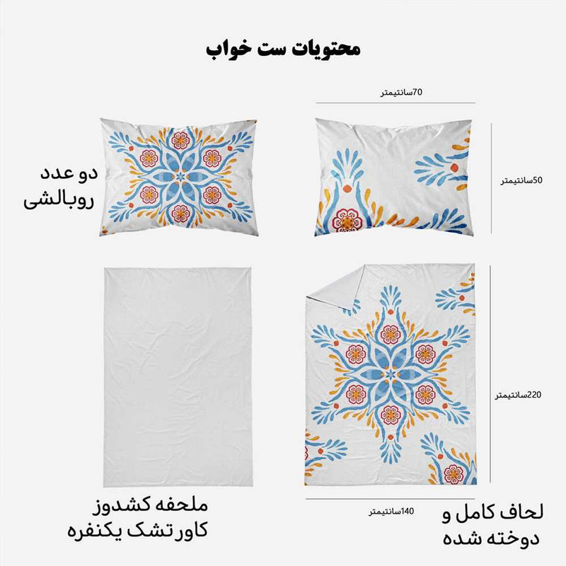 سرویس خواب مدوپد طرح گلبرگ آبی مدل mod00014 یک نفره 4 تکه
