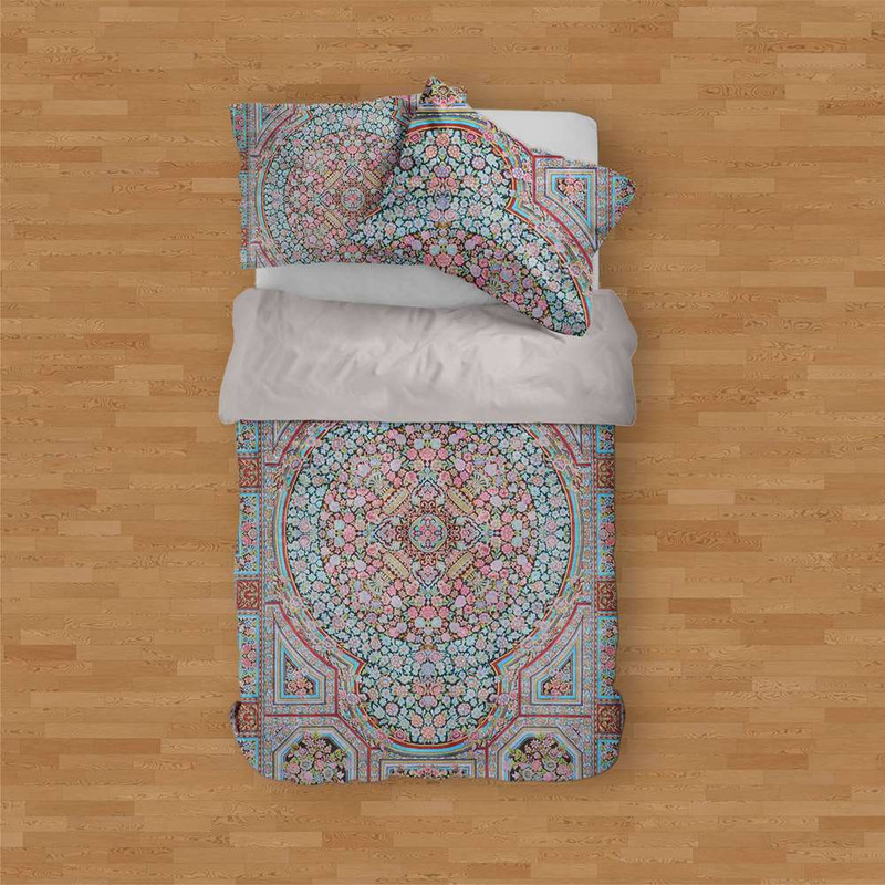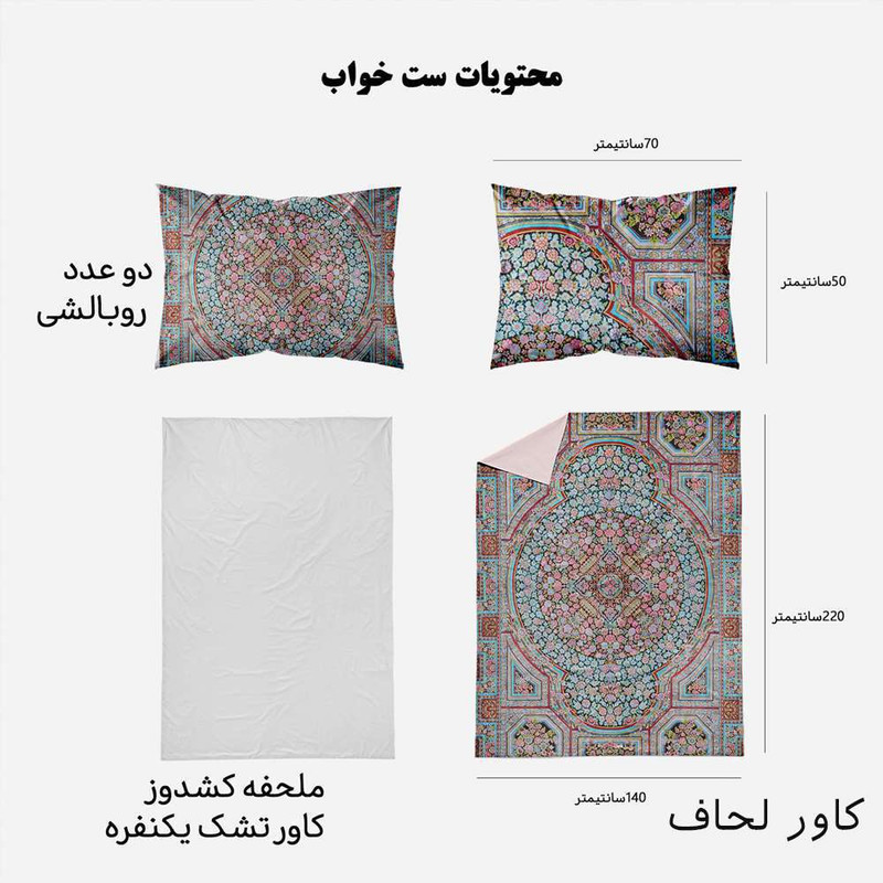 سرویس روتختی مدوپد طرح قالی قم ترنج قابی مدل C-Ghom136 یک نفره 4 تکه