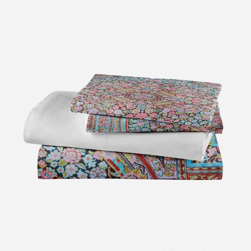 سرویس خواب مدوپد با طرحهای بسیار متنوع، رنگارنگ و زیبا، دقیقا همان چیزی را به شما ارائه میکند که دنبالش میگردید. مدوپد برای هر سلیقهای طرحی مناسب تولید کرده است. ست کاور لحاف مدوپد مناسب افرادی است که لحاف مناسب دارند و میخواهند یک سرویس اقتصادی بخرند تا از کاور لحاف برای روکش کردن آن استفاده کنند. این سرویس شامل دو روبالشی با دوخت پاکتی، یک کاور یا روکش لحاف زیپدار و یک روتشکی سفید دورکشدار است. داخل کاور لحاف نیز 4 بندینک دوخته شده که به کمک آنها میتوانید لحافتان را داخل کاور محکم کنید تا لیز نخورد. ابعاد روتشکی دورکشدار مناسب همه تشک های تک نفره است و تشک را به صورت کامل میپوشاند. ست خواب مدوپد تا وقتی که شما از آن خسته نشدهاید عمر میکند؛ با همان کیفیت روز اول. طرح و رنگ پارچه آن پس از شستوشو از بین نمیرود. استفاده از پارچههای مرغوب و بادوام، بهترین انتخاب را برای تغییر دکوراسیون اتاق خواب در اختیار شما میگذارد. محیط تولید محصولات کالای خواب مدوپد، فضایی بهداشتی و ایزوله بوده و مرتب توسط کارشناسان مورد بازرسی قرار می گیرد. همچنین ست خواب ها پس از تولید مورد بازبینی کیفی قرار گرفته و در دو مرحله بسته بندی می شوند. روتشکی مدوپد از جنس نخ صد درصد پنبه و جذب کننده کامل تعریق بدن است. محصولی که میخرید از بهترین پارچه ایرانی تهیه شده و طرح آن با استفاده از رنگهای درجه یک بر روی پارچه نقش بسته است. کاور لحاف زیپدار مدوپد از بهترین پارچههای ساتین موجود در بازار تهیه شده که ثبات و کیفیت رنگ آن را تضمین میکند. سیلیکون سُر و نرم ضد حساسیت و ضد باکتری تراکم بافت بسیار بالا با نرمی و لطافت بسیار زیاد، دوام و عمر پارچه را طولانی میکند. (باید توجه داشت که ساتین با ساتن فرق دارد. ساتین لیز نمیخورد و در مقایسه با ساتن براق نیست.) جنس این محصول ضدحساسیت، بسیار لطیف، سبک و خنک است و کمک میکند خواب عمیقتر و آرامتری داشته باشید. این سرویس خواب را میتوانید بدون ترس از آبرفتن یا تغییر رنگ و کیفیت در ماشین لباسشویی با دمای 30 درجه سانتی گراد بشویید. فرش قم زمینه سیاه آبی سرخابی ترنج قابی صورتی
