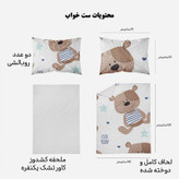 سرویس خواب مدوپد با طرحهای بسیار متنوع، رنگارنگ و زیبا، دقیقا همان چیزی را به شما ارائه میکند که دنبالش میگردید. مدوپد برای هر سلیقهای طرحی مناسب تولید کرده است. ست کاور لحاف مدوپد مناسب افرادی است که لحاف مناسب دارند و میخواهند یک سرویس اقتصادی بخرند تا از کاور لحاف برای روکش کردن آن استفاده کنند. این سرویس شامل دو روبالشی با دوخت پاکتی، یک کاور یا روکش لحاف زیپدار و یک روتشکی سفید دورکشدار است. داخل کاور لحاف نیز 4 بندینک دوخته شده که به کمک آنها میتوانید لحافتان را داخل کاور محکم کنید تا لیز نخورد. ابعاد روتشکی دورکشدار مناسب همه تشک های تک نفره است و تشک را به صورت کامل میپوشاند. ست خواب مدوپد تا وقتی که شما از آن خسته نشدهاید عمر میکند؛ با همان کیفیت روز اول. طرح و رنگ پارچه آن پس از شستوشو از بین نمیرود. استفاده از پارچههای مرغوب و بادوام، بهترین انتخاب را برای تغییر دکوراسیون اتاق خواب در اختیار شما میگذارد. محیط تولید محصولات کالای خواب مدوپد، فضایی بهداشتی و ایزوله بوده و مرتب توسط کارشناسان مورد بازرسی قرار می گیرد. همچنین ست خواب ها پس از تولید مورد بازبینی کیفی قرار گرفته و در دو مرحله بسته بندی می شوند. روتشکی مدوپد از جنس نخ صد درصد پنبه و جذب کننده کامل تعریق بدن است. محصولی که میخرید از بهترین پارچه ایرانی تهیه شده و طرح آن با استفاده از رنگهای درجه یک بر روی پارچه نقش بسته است. کاور لحاف زیپدار مدوپد از بهترین پارچههای ساتین موجود در بازار تهیه شده که ثبات و کیفیت رنگ آن را تضمین میکند. سیلیکون سُر و نرم ضد حساسیت و ضد باکتری تراکم بافت بسیار بالا با نرمی و لطافت بسیار زیاد، دوام و عمر پارچه را طولانی میکند. (باید توجه داشت که ساتین با ساتن فرق دارد. ساتین لیز نمیخورد و در مقایسه با ساتن براق نیست.) جنس این محصول ضدحساسیت، بسیار لطیف، سبک و خنک است و کمک میکند خواب عمیقتر و آرامتری داشته باشید. این سرویس خواب را میتوانید بدون ترس از آبرفتن یا تغییر رنگ و کیفیت در ماشین لباسشویی با دمای 30 درجه سانتی گراد بشویید. #تصویرسازی #خرس #قهوهای #آبی #شاد #بچگانه #cute teddy