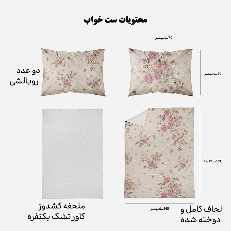 سرویس خواب مدوپد با طرحهای بسیار متنوع، رنگارنگ و زیبا، دقیقا همان چیزی را به شما ارائه میکند که دنبالش میگردید. مدوپد برای هر سلیقهای طرحی مناسب تولید کرده است. ست کاور لحاف مدوپد مناسب افرادی است که لحاف مناسب دارند و میخواهند یک سرویس اقتصادی بخرند تا از کاور لحاف برای روکش کردن آن استفاده کنند. این سرویس شامل دو روبالشی با دوخت پاکتی، یک کاور یا روکش لحاف زیپدار و یک روتشکی سفید دورکشدار است. داخل کاور لحاف نیز 4 بندینک دوخته شده که به کمک آنها میتوانید لحافتان را داخل کاور محکم کنید تا لیز نخورد. ابعاد روتشکی دورکشدار مناسب همه تشک های تک نفره است و تشک را به صورت کامل میپوشاند. ست خواب مدوپد تا وقتی که شما از آن خسته نشدهاید عمر میکند؛ با همان کیفیت روز اول. طرح و رنگ پارچه آن پس از شستوشو از بین نمیرود. استفاده از پارچههای مرغوب و بادوام، بهترین انتخاب را برای تغییر دکوراسیون اتاق خواب در اختیار شما میگذارد. محیط تولید محصولات کالای خواب مدوپد، فضایی بهداشتی و ایزوله بوده و مرتب توسط کارشناسان مورد بازرسی قرار می گیرد. همچنین ست خواب ها پس از تولید مورد بازبینی کیفی قرار گرفته و در دو مرحله بسته بندی می شوند. روتشکی مدوپد از جنس نخ صد درصد پنبه و جذب کننده کامل تعریق بدن است. محصولی که میخرید از بهترین پارچه ایرانی تهیه شده و طرح آن با استفاده از رنگهای درجه یک بر روی پارچه نقش بسته است. کاور لحاف زیپدار مدوپد از بهترین پارچههای ساتین موجود در بازار تهیه شده که ثبات و کیفیت رنگ آن را تضمین میکند. سیلیکون سُر و نرم ضد حساسیت و ضد باکتری تراکم بافت بسیار بالا با نرمی و لطافت بسیار زیاد، دوام و عمر پارچه را طولانی میکند. (باید توجه داشت که ساتین با ساتن فرق دارد. ساتین لیز نمیخورد و در مقایسه با ساتن براق نیست.) جنس این محصول ضدحساسیت، بسیار لطیف، سبک و خنک است و کمک میکند خواب عمیقتر و آرامتری داشته باشید. این سرویس خواب را میتوانید بدون ترس از آبرفتن یا تغییر رنگ و کیفیت در ماشین لباسشویی با دمای 30 درجه سانتی گراد بشویید. #نقاشی #تصویرسازی #صورتی #کالباسی #گلبهی #نباتی #کلاسیک