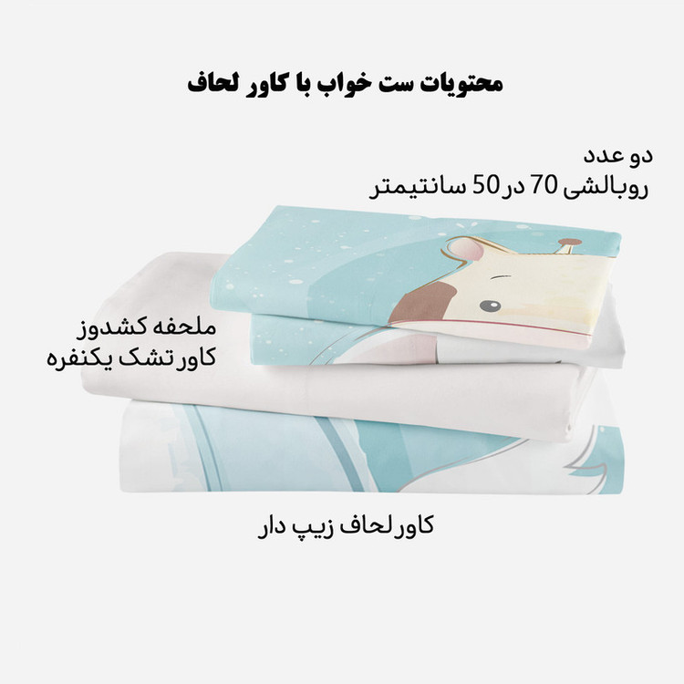 ست کاور لحاف مدوپد مناسب افرادی است که لحاف مناسب دارند و میخواهند یک سرویس اقتصادی بخرند تا از کاور لحاف برای روکش کردن آن استفاده کنند. این سرویس شامل دو روبالشی با دوخت پاکتی، یک کاور یا روکش لحاف زیپدار و یک روتشکی سفید دورکشدار است. داخل کاور لحاف نیز ۴ بندینک دوخته شده که به کمک آنها میتوانید لحافتان را داخل کاور محکم کنید تا لیز نخورد. ابعاد روتشکی دورکشدار مناسب همه تشک های تک نفره است و تشک را به صورت کامل میپوشاند.