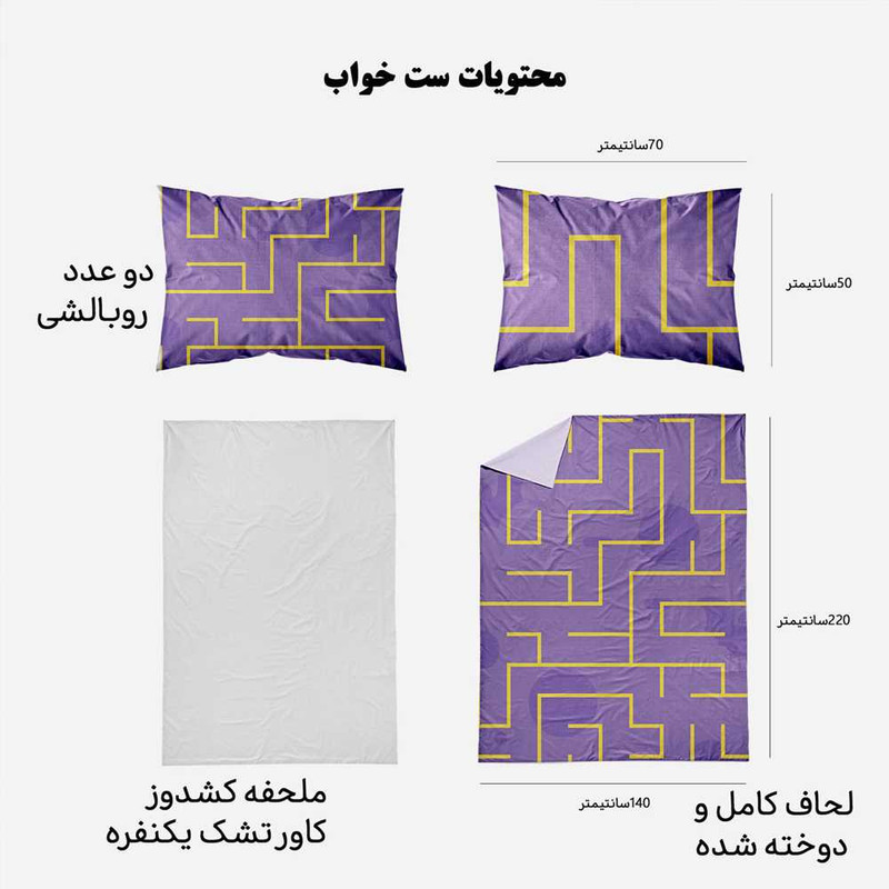 سرویس خواب مدوپد طرح هزارتوی آب‌نباتی مدل mod00162 یک نفره 4 تکه
