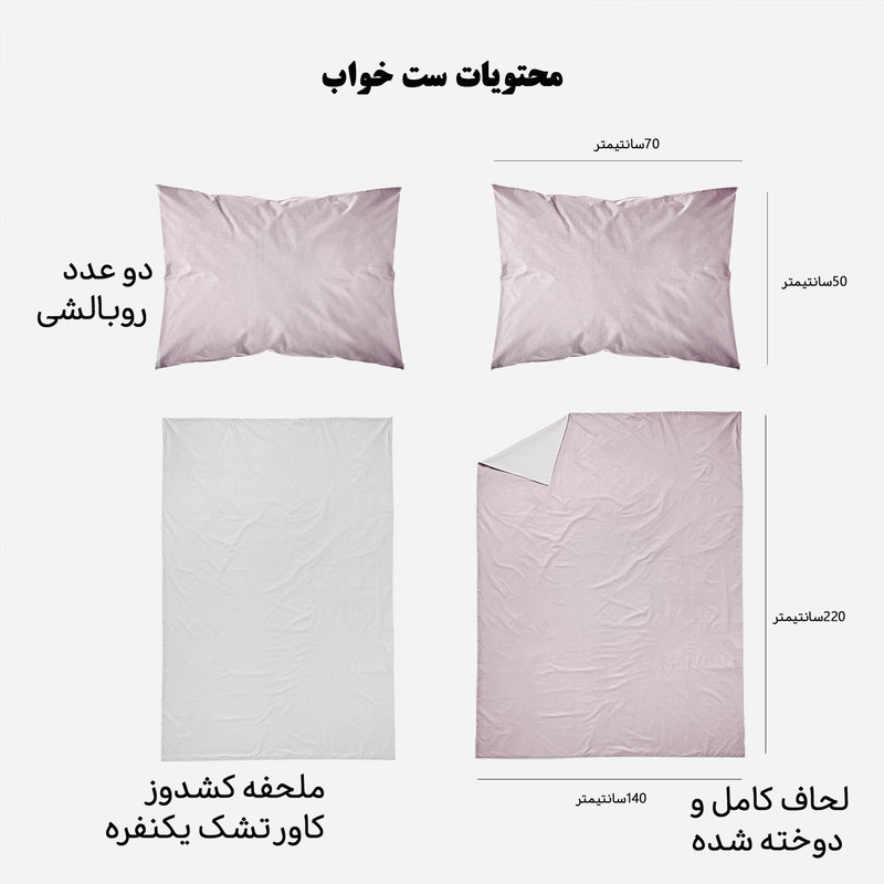سرویس خواب مدوپد با طرحهای بسیار متنوع، رنگارنگ و زیبا، دقیقا همان چیزی را به شما ارائه میکند که دنبالش میگردید. مدوپد برای هر سلیقهای طرحی مناسب تولید کرده است. ست کاور لحاف مدوپد مناسب افرادی است که لحاف مناسب دارند و میخواهند یک سرویس اقتصادی بخرند تا از کاور لحاف برای روکش کردن آن استفاده کنند. این سرویس شامل دو روبالشی با دوخت پاکتی، یک کاور یا روکش لحاف زیپدار و یک روتشکی سفید دورکشدار است. داخل کاور لحاف نیز 4 بندینک دوخته شده که به کمک آنها میتوانید لحافتان را داخل کاور محکم کنید تا لیز نخورد. ابعاد روتشکی دورکشدار مناسب همه تشک های تک نفره است و تشک را به صورت کامل میپوشاند. ست خواب مدوپد تا وقتی که شما از آن خسته نشدهاید عمر میکند؛ با همان کیفیت روز اول. طرح و رنگ پارچه آن پس از شستوشو از بین نمیرود. استفاده از پارچههای مرغوب و بادوام، بهترین انتخاب را برای تغییر دکوراسیون اتاق خواب در اختیار شما میگذارد. محیط تولید محصولات کالای خواب مدوپد، فضایی بهداشتی و ایزوله بوده و مرتب توسط کارشناسان مورد بازرسی قرار می گیرد. همچنین ست خواب ها پس از تولید مورد بازبینی کیفی قرار گرفته و در دو مرحله بسته بندی می شوند. روتشکی مدوپد از جنس نخ صد درصد پنبه و جذب کننده کامل تعریق بدن است. محصولی که میخرید از بهترین پارچه ایرانی تهیه شده و طرح آن با استفاده از رنگهای درجه یک بر روی پارچه نقش بسته است. کاور لحاف زیپدار مدوپد از بهترین پارچههای ساتین موجود در بازار تهیه شده که ثبات و کیفیت رنگ آن را تضمین میکند. سیلیکون سُر و نرم ضد حساسیت و ضد باکتری تراکم بافت بسیار بالا با نرمی و لطافت بسیار زیاد، دوام و عمر پارچه را طولانی میکند. (باید توجه داشت که ساتین با ساتن فرق دارد. ساتین لیز نمیخورد و در مقایسه با ساتن براق نیست.) جنس این محصول ضدحساسیت، بسیار لطیف، سبک و خنک است و کمک میکند خواب عمیقتر و آرامتری داشته باشید. این سرویس خواب را میتوانید بدون ترس از آبرفتن یا تغییر رنگ و کیفیت در ماشین لباسشویی با دمای 30 درجه سانتی گراد بشویید. #دخترونه #صورتی #گلی #سرخ روشن #pink