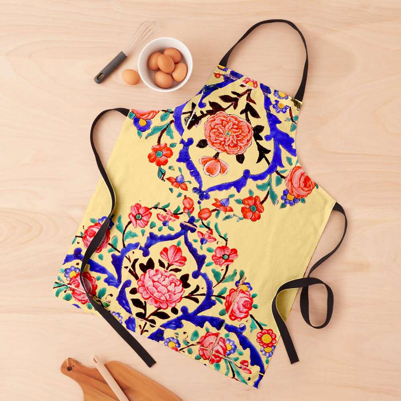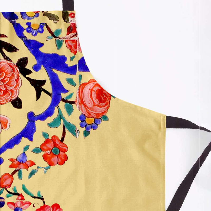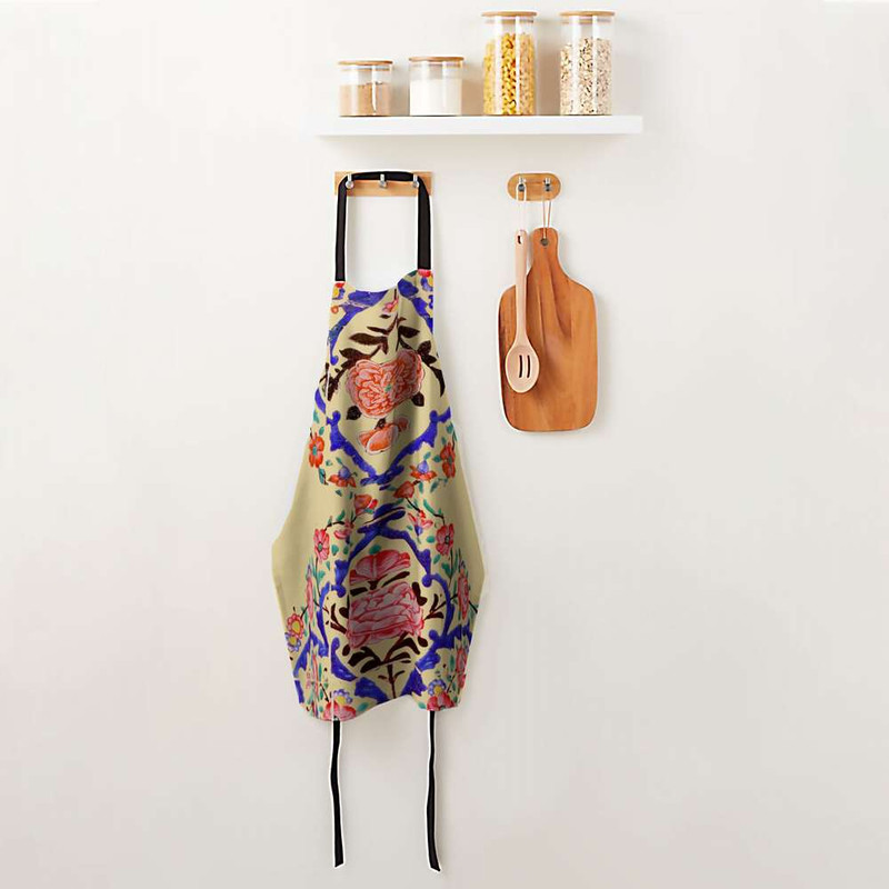 پیشبند جزیی از ملزومات حرفه ای آشپزخانه شماست. پیشبندهای برند مدوپد، جهت محافظت از لباس شما و داشتن احساسی بهتر، بسیار حرفه ای و کاربردی طراحی شده و در عین حال طرح های بسیار متنوع آن هر سلیقه ای را راضی میکند. پارچه این پیشبند از جنس کتان است و زیر آن یک آستر پلاستیکی ضد آب، لحاظ شده. با داشتن پیشبند مدوپد، از حضورتان در آشپزخانه لذت میبرید و ثبت خاطره خواهید داشت. کاشی گل آبی گل سرخ نگارگری هنری سنتی
