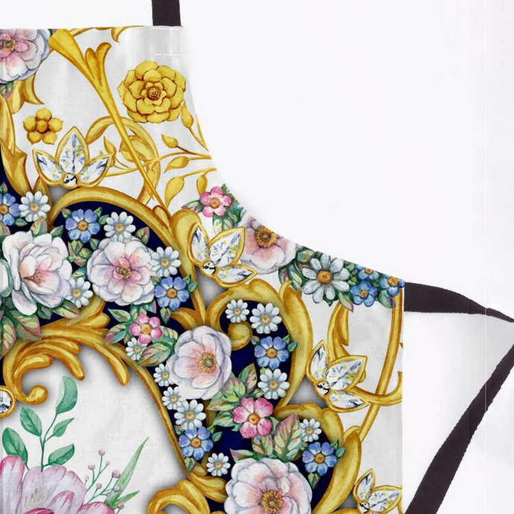پیشبند جزیی از ملزومات حرفه ای آشپزخانه شماست. پیشبندهای برند مدوپد، جهت محافظت از لباس شما و داشتن احساسی بهتر، بسیار حرفه ای و کاربردی طراحی شده و در عین حال طرح های بسیار متنوع آن هر سلیقه ای را راضی میکند. پارچه این پیشبند از جنس کتان است و زیر آن یک آستر پلاستیکی ضد آب، لحاظ شده. با داشتن پیشبند مدوپد، از حضورتان در آشپزخانه لذت میبرید و ثبت خاطره خواهید داشت. سنتی هنری ایرانی طلایی پرنده گل نگین
