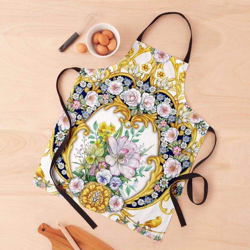 پیشبند جزیی از ملزومات حرفه ای آشپزخانه شماست. پیشبندهای برند مدوپد، جهت محافظت از لباس شما و داشتن احساسی بهتر، بسیار حرفه ای و کاربردی طراحی شده و در عین حال طرح های بسیار متنوع آن هر سلیقه ای را راضی میکند. پارچه این پیشبند از جنس کتان است و زیر آن یک آستر پلاستیکی ضد آب، لحاظ شده. با داشتن پیشبند مدوپد، از حضورتان در آشپزخانه لذت میبرید و ثبت خاطره خواهید داشت. سنتی هنری ایرانی طلایی پرنده گل نگین