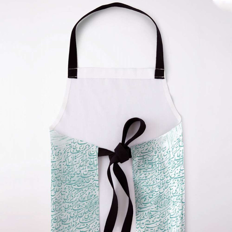 پیشبند جزیی از ملزومات حرفه ای آشپزخانه شماست. پیشبندهای برند مدوپد، جهت محافظت از لباس شما و داشتن احساسی بهتر، بسیار حرفه ای و کاربردی طراحی شده و در عین حال طرح های بسیار متنوع آن هر سلیقه ای را راضی میکند. پارچه این پیشبند از جنس کتان است و زیر آن یک آستر پلاستیکی ضد آب، لحاظ شده. با داشتن پیشبند مدوپد، از حضورتان در آشپزخانه لذت میبرید و ثبت خاطره خواهید داشت. نستعلیق بیضی آبی سفید نقاشیخط خوشنویسی