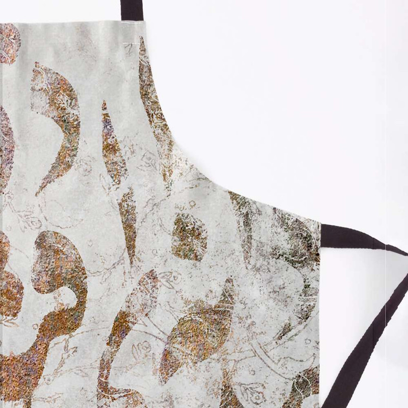 پیشبند جزیی از ملزومات حرفه ای آشپزخانه شماست. پیشبندهای برند مدوپد، جهت محافظت از لباس شما و داشتن احساسی بهتر، بسیار حرفه ای و کاربردی طراحی شده و در عین حال طرح های بسیار متنوع آن هر سلیقه ای را راضی میکند. پارچه این پیشبند از جنس کتان است و زیر آن یک آستر پلاستیکی ضد آب، لحاظ شده. با داشتن پیشبند مدوپد، از حضورتان در آشپزخانه لذت میبرید و ثبت خاطره خواهید داشت. نقاشیخط خوشنویسی قهوهای سبز لجنی اسلیمی سمنی