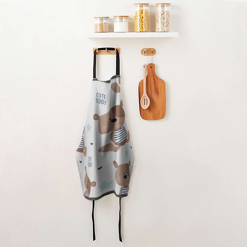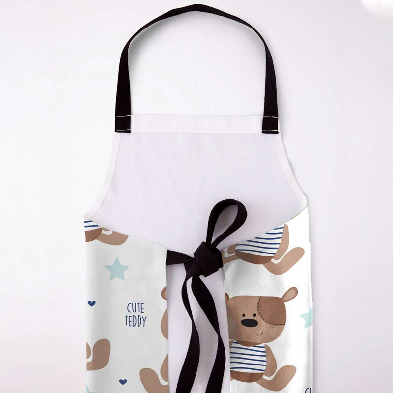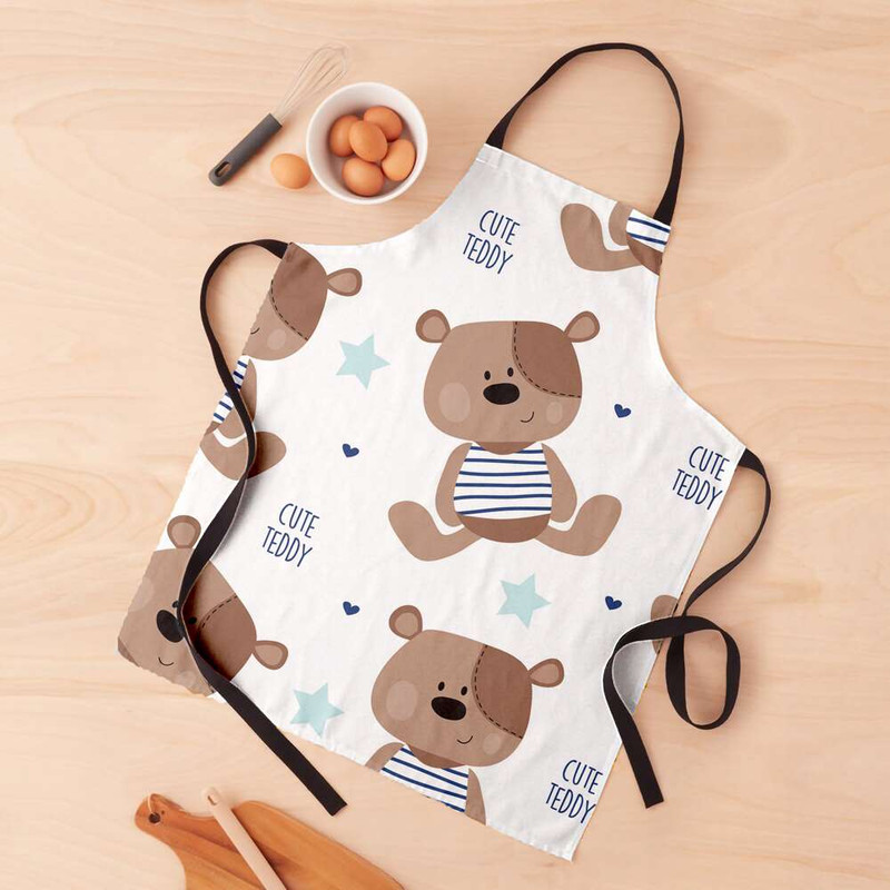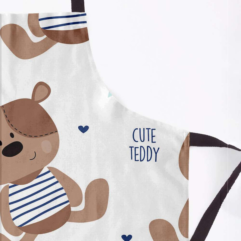 پیشبند جزیی از ملزومات حرفه ای آشپزخانه شماست. پیشبندهای برند مدوپد، جهت محافظت از لباس شما و داشتن احساسی بهتر، بسیار حرفه ای و کاربردی طراحی شده و در عین حال طرح های بسیار متنوع آن هر سلیقه ای را راضی میکند. پارچه این پیشبند از جنس کتان است و زیر آن یک آستر پلاستیکی ضد آب، لحاظ شده. با داشتن پیشبند مدوپد، از حضورتان در آشپزخانه لذت میبرید و ثبت خاطره خواهید داشت. تصویرسازی خرس قهوهای آبی شاد بچگانه cute teddy