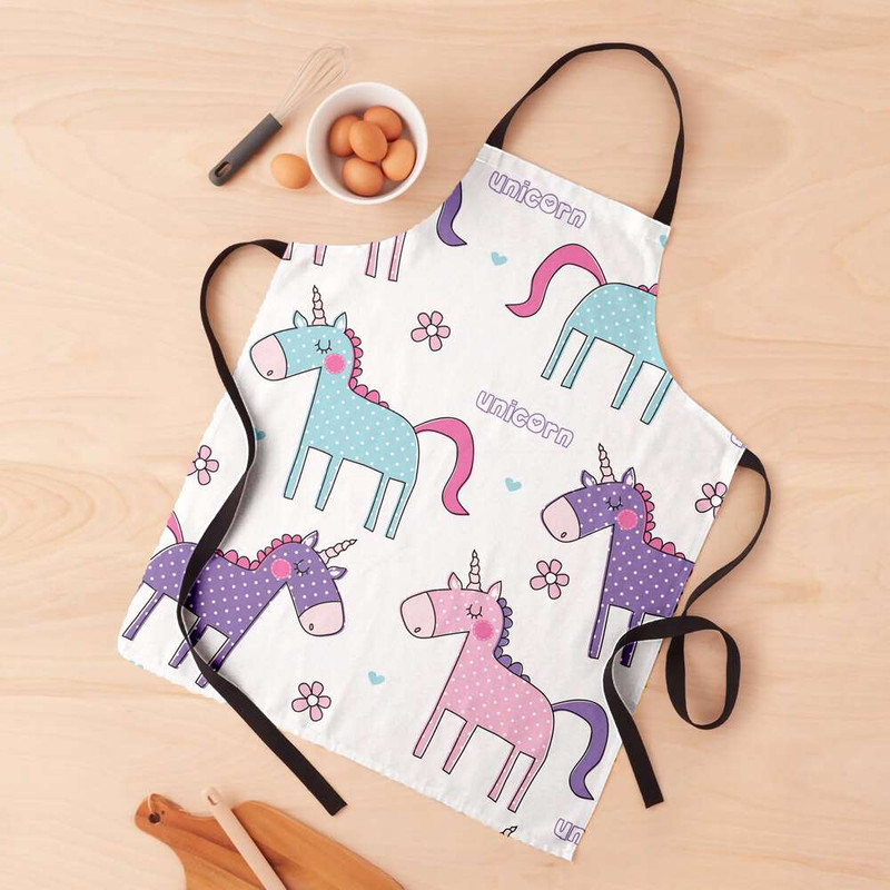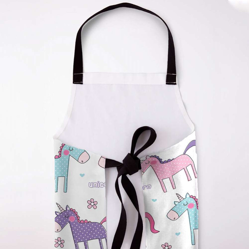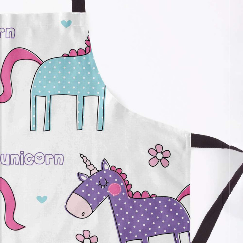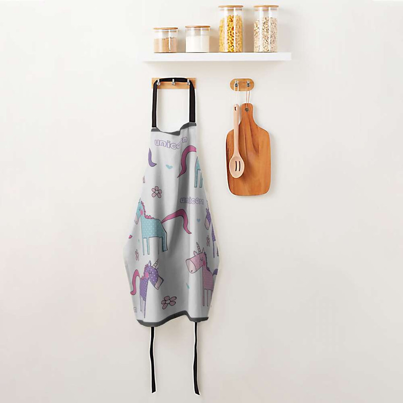 پیشبند جزیی از ملزومات حرفه ای آشپزخانه شماست. پیشبندهای برند مدوپد، جهت محافظت از لباس شما و داشتن احساسی بهتر، بسیار حرفه ای و کاربردی طراحی شده و در عین حال طرح های بسیار متنوع آن هر سلیقه ای را راضی میکند. پارچه این پیشبند از جنس کتان است و زیر آن یک آستر پلاستیکی ضد آب، لحاظ شده. با داشتن پیشبند مدوپد، از حضورتان در آشپزخانه لذت میبرید و ثبت خاطره خواهید داشت. تصویرسازی صورتی بنفش آبی دخترانه بچگانه unicorn