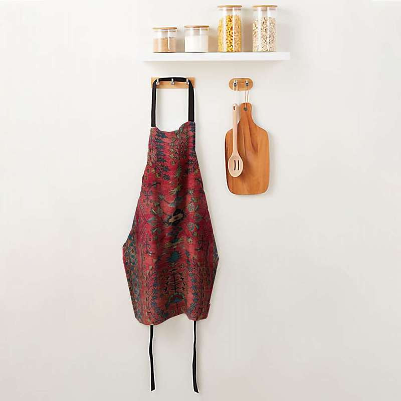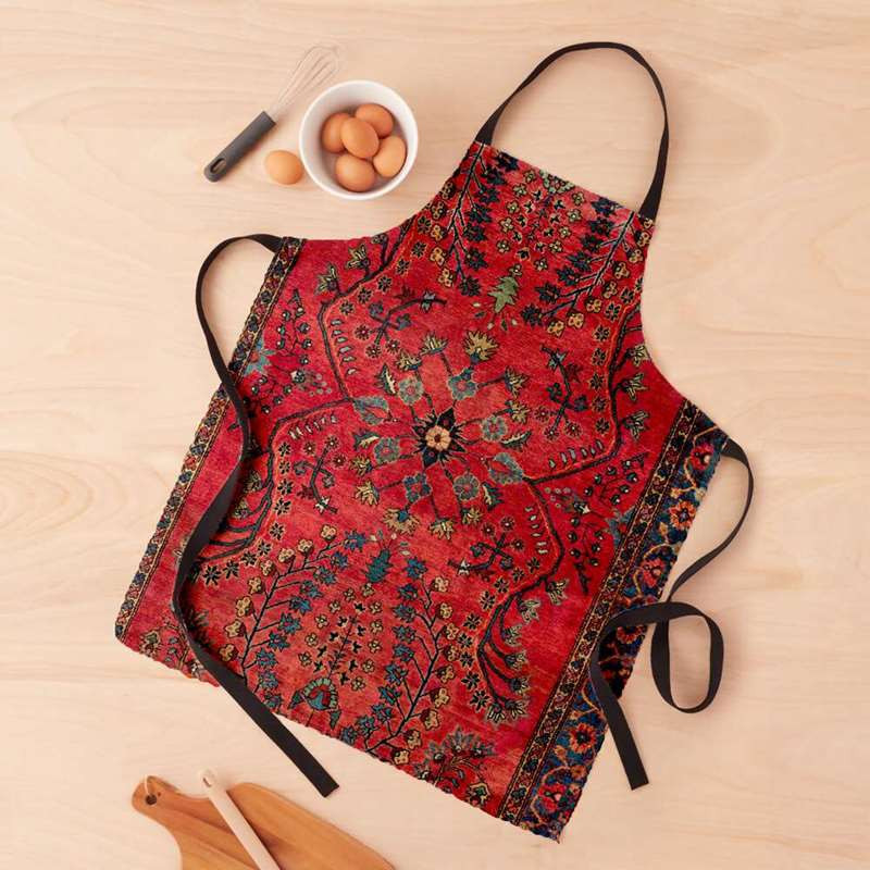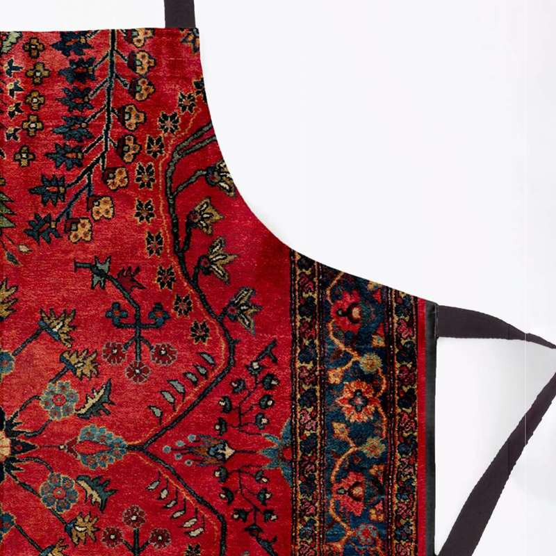 پیشبند جزیی از ملزومات حرفه ای آشپزخانه شماست. پیشبندهای برند مدوپد، جهت محافظت از لباس شما و داشتن احساسی بهتر، بسیار حرفه ای و کاربردی طراحی شده و در عین حال طرح های بسیار متنوع آن هر سلیقه ای را راضی میکند. پارچه این پیشبند از جنس کتان است و زیر آن یک آستر پلاستیکی ضد آب، لحاظ شده. با داشتن پیشبند مدوپد، از حضورتان در آشپزخانه لذت میبرید و ثبت خاطره خواهید داشت.گلیم قرمز سنتی طرحدار ایرانی هنری گل