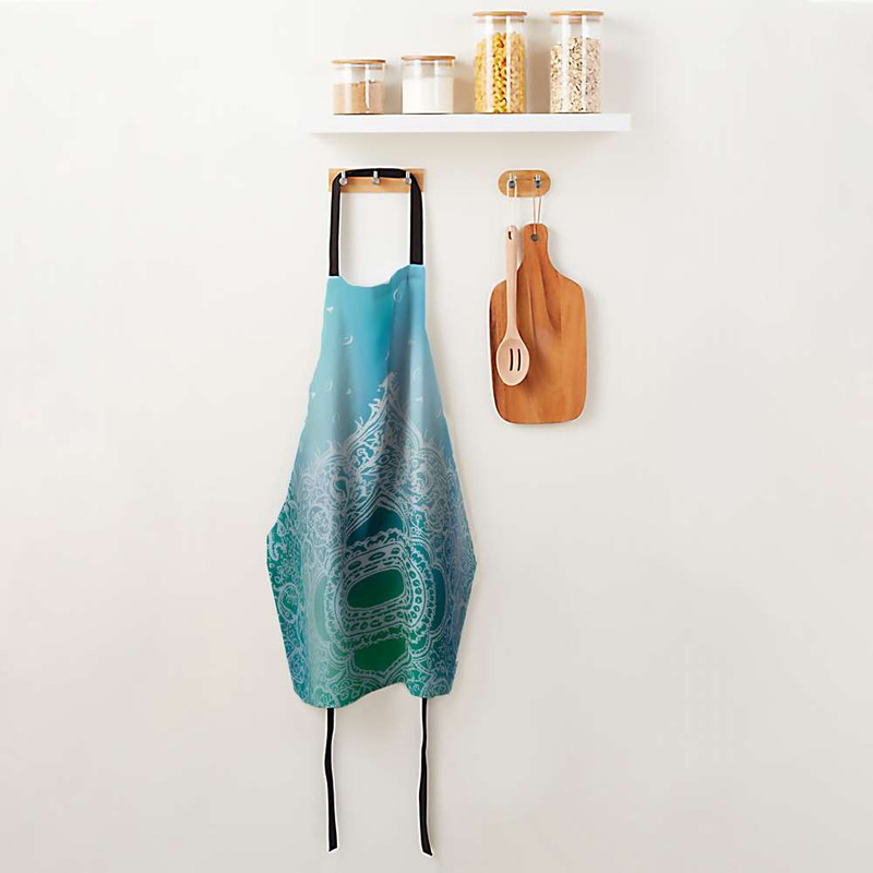 پیشبند جزیی از ملزومات حرفه ای آشپزخانه شماست. پیشبندهای برند مدوپد، جهت محافظت از لباس شما و داشتن احساسی بهتر، بسیار حرفه ای و کاربردی طراحی شده و در عین حال طرح های بسیار متنوع آن هر سلیقه ای را راضی میکند. پارچه این پیشبند از جنس کتان است و زیر آن یک آستر پلاستیکی ضد آب، لحاظ شده. با داشتن پیشبند مدوپد، از حضورتان در آشپزخانه لذت میبرید و ثبت خاطره خواهید داشت. هنری مدرن فیروزه سنتی برگ