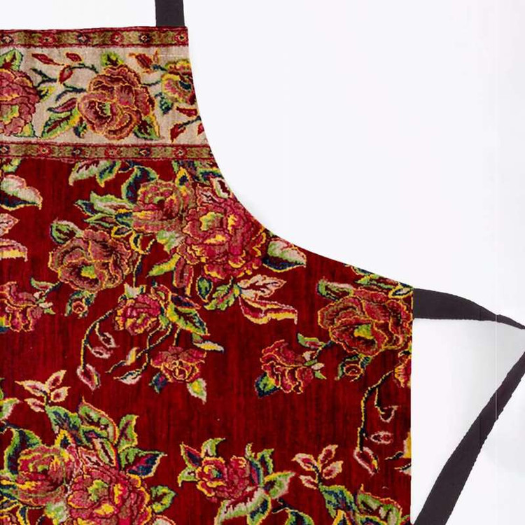 پیشبند جزیی از ملزومات حرفه ای آشپزخانه شماست. پیشبندهای برند مدوپد، جهت محافظت از لباس شما و داشتن احساسی بهتر، بسیار حرفه ای و کاربردی طراحی شده و در عین حال طرح های بسیار متنوع آن هر سلیقه ای را راضی میکند. پارچه این پیشبند از جنس کتان است و زیر آن یک آستر پلاستیکی ضد آب، لحاظ شده. با داشتن پیشبند مدوپد، از حضورتان در آشپزخانه لذت میبرید و ثبت خاطره خواهید داشت.قالی جگری سنتی طرحدار ایرانی هنری گل