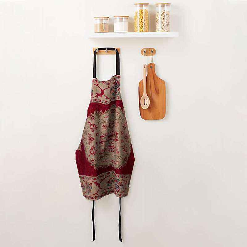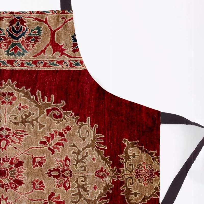 پیشبند جزیی از ملزومات حرفه ای آشپزخانه شماست. پیشبندهای برند مدوپد، جهت محافظت از لباس شما و داشتن احساسی بهتر، بسیار حرفه ای و کاربردی طراحی شده و در عین حال طرح های بسیار متنوع آن هر سلیقه ای را راضی میکند. پارچه این پیشبند از جنس کتان است و زیر آن یک آستر پلاستیکی ضد آب، لحاظ شده. با داشتن پیشبند مدوپد، از حضورتان در آشپزخانه لذت میبرید و ثبت خاطره خواهید داشت.قالی جگری سنتی طرحدار ایرانی هنری گل