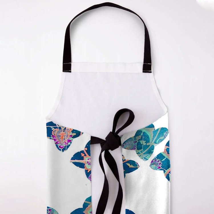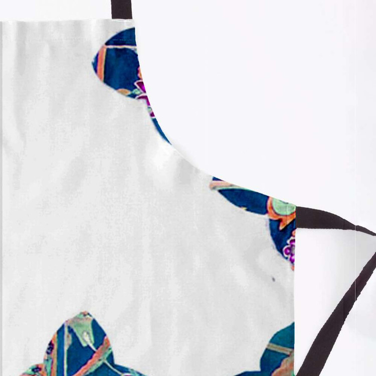 پیشبند جزیی از ملزومات حرفه ای آشپزخانه شماست. پیشبندهای برند مدوپد، جهت محافظت از لباس شما و داشتن احساسی بهتر، بسیار حرفه ای و کاربردی طراحی شده و در عین حال طرح های بسیار متنوع آن هر سلیقه ای را راضی میکند. پارچه این پیشبند از جنس کتان است و زیر آن یک آستر پلاستیکی ضد آب، لحاظ شده. با داشتن پیشبند مدوپد، از حضورتان در آشپزخانه لذت میبرید و ثبت خاطره خواهید داشت. ستاره چهارپر نقوش اسلیمی ایرانی هنری کاشی آبرنگ سفید