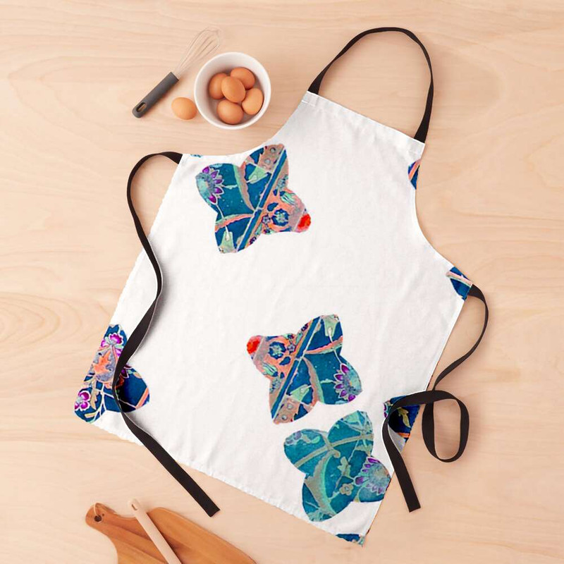 پیشبند جزیی از ملزومات حرفه ای آشپزخانه شماست. پیشبندهای برند مدوپد، جهت محافظت از لباس شما و داشتن احساسی بهتر، بسیار حرفه ای و کاربردی طراحی شده و در عین حال طرح های بسیار متنوع آن هر سلیقه ای را راضی میکند. پارچه این پیشبند از جنس کتان است و زیر آن یک آستر پلاستیکی ضد آب، لحاظ شده. با داشتن پیشبند مدوپد، از حضورتان در آشپزخانه لذت میبرید و ثبت خاطره خواهید داشت. ستاره چهارپر نقوش اسلیمی ایرانی هنری کاشی آبرنگ سفید