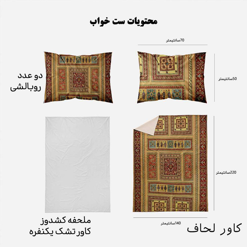 سرویس روتختی تینادکور طرح فرش سیرجان مدل C-Sirjan14 یک نفره 4 تکه